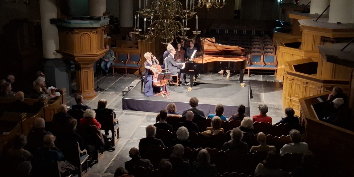 Al snel na het ontvangstapplaus neemt het tweetal plaats op het podium en speelt resoluut. Het zijn de arpeggioakkoorden in de piano, in de cellosonate nr 2 van Nikolai Miakovsky, die de ruimte vullen waarna in maat twee de cello bijvalt met lange noten als een soort contrasterende rust. Zo geeft de cello de opmaat voor het cantabilespel met lange vloeiende frasen vaak in hoge ligging. Geen makkelijke taak want de lange spanningsbogen eisen controle over streek en vibrato.